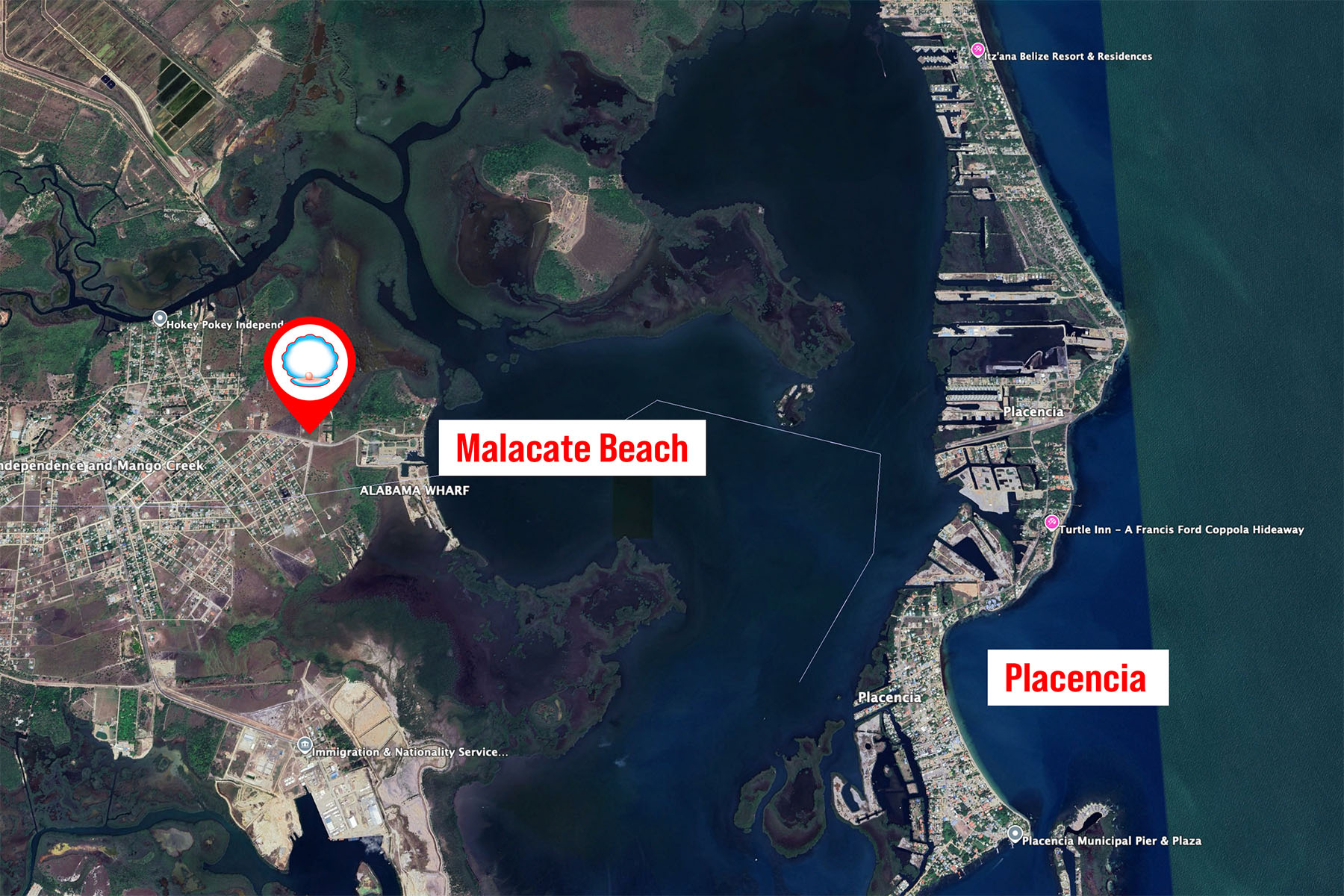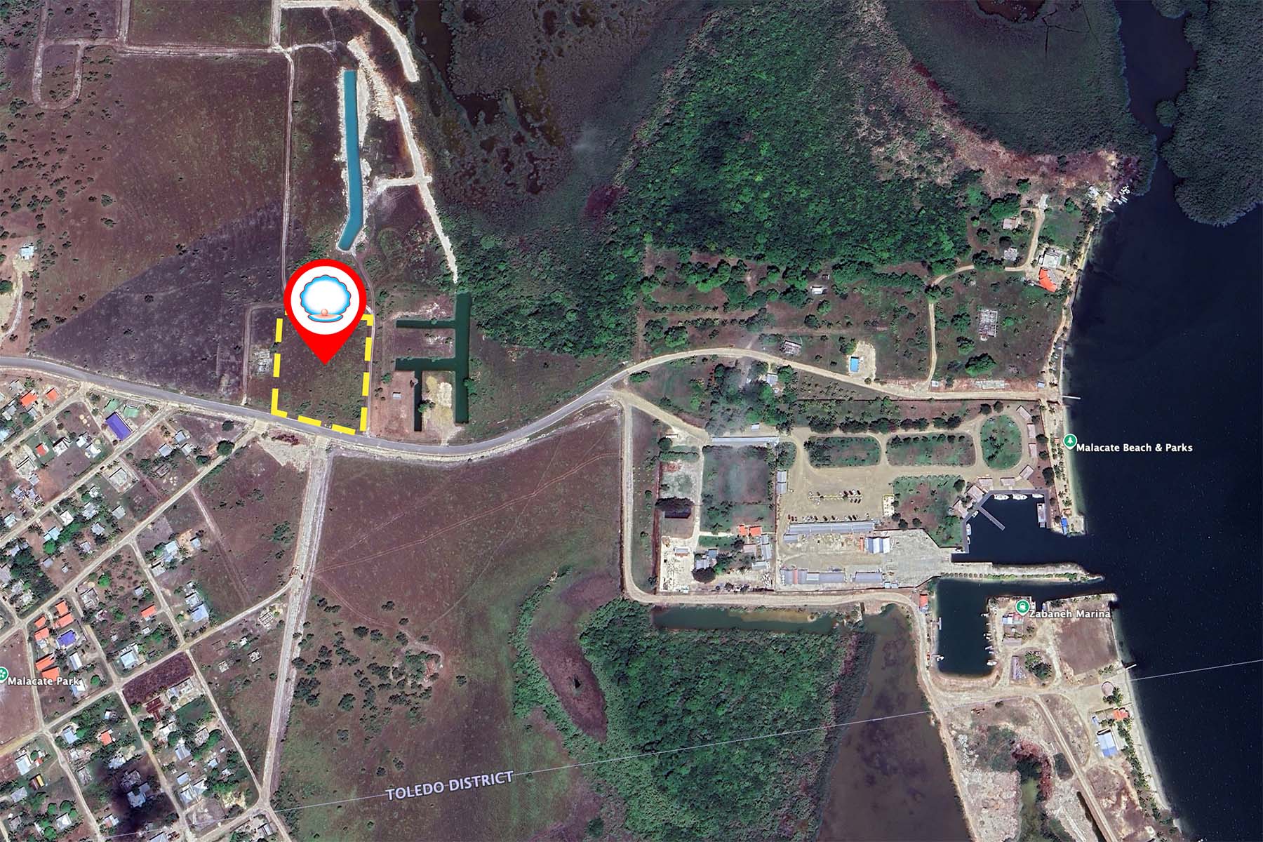 This 2.5-acre parcel is located directly on Malacate Road in Independence Village, just a short distance from Malacate Beach and the nearby Hokey Pokey water taxi that provides regular transport to the Placencia Peninsula.