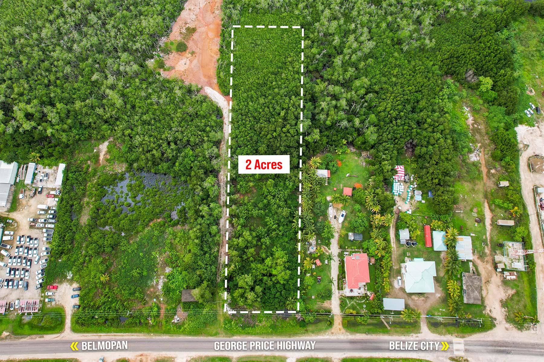 An excellent opportunity to secure 2 acres of roadside commercial land along the George Price Highway (Mile 4.5), just a few minutes away from the John Smith Road junction. This property offers a strategic location minutes from Belize City and within easy reach of the Philip Goldson International Airport, making it a strong contender for a range of commercial or light-industrial uses.