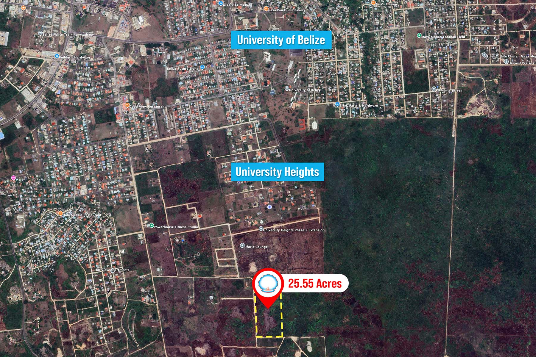 This 25.55-acre parcel is situated immediately adjacent to University Heights Phase 2 Extension, a well-known residential neighborhood in Belmopan. The land is elevated and hilly, providing potential for scenic views across Belmopan and its surroundings. The terrain could be graded or partially leveled, depending on development plans and earth-moving material can be repurposed for construction and landscaping.