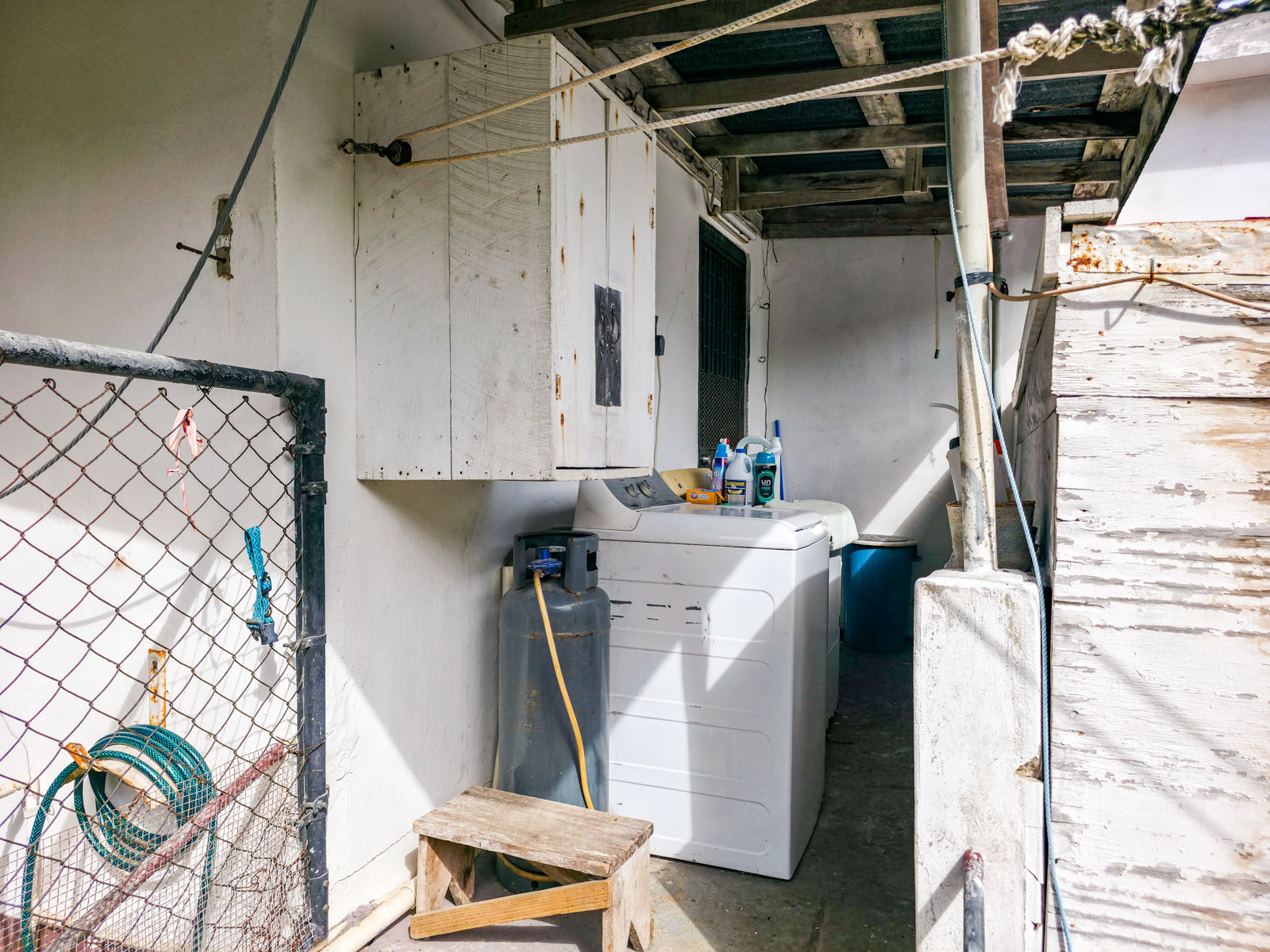 A covered rear veranda is currently used for laundry, with additional storage space located at the back of the home. The lot is fully fenced and includes a gated driveway with carport, allowing for secure off-street parking.