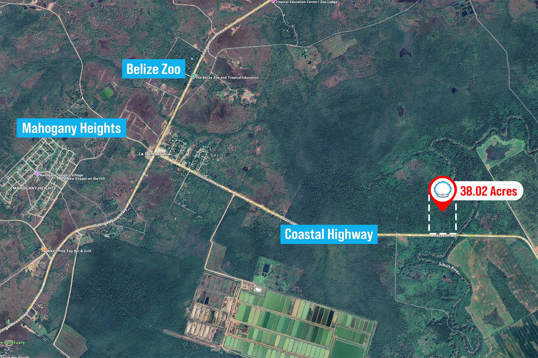 The property is positioned approximately two miles from the La Democracia junction, giving it direct access to the George Price Highway, Belize City, and the southern coastal region. This portion of the highway has seen growing interest since its recent upgrades, improving travel efficiency and increasing the area’s development activity. Nearby communities such as Mahogany Heights continue to expand, reflecting ongoing settlement along the corridor. The parcel is also within convenient reach of the Belize Zoo, a nationally recognized landmark that contributes to broader familiarity with the area. The eastern and northern edges of the property are bordered by the Sibun River, which comes within approximately 150 feet in some areas, adding a natural water feature that enhances the land’s landscape and development potential. With its extensive roadside frontage, the property is well-suited for projects that benefit from visibility, accessibility, and adaptable land use planning.